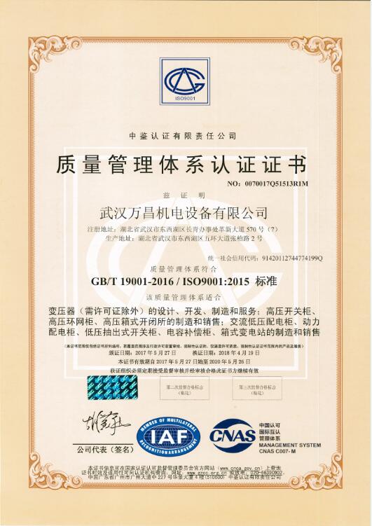 質(zhì)量管理體系認(rèn)證證書