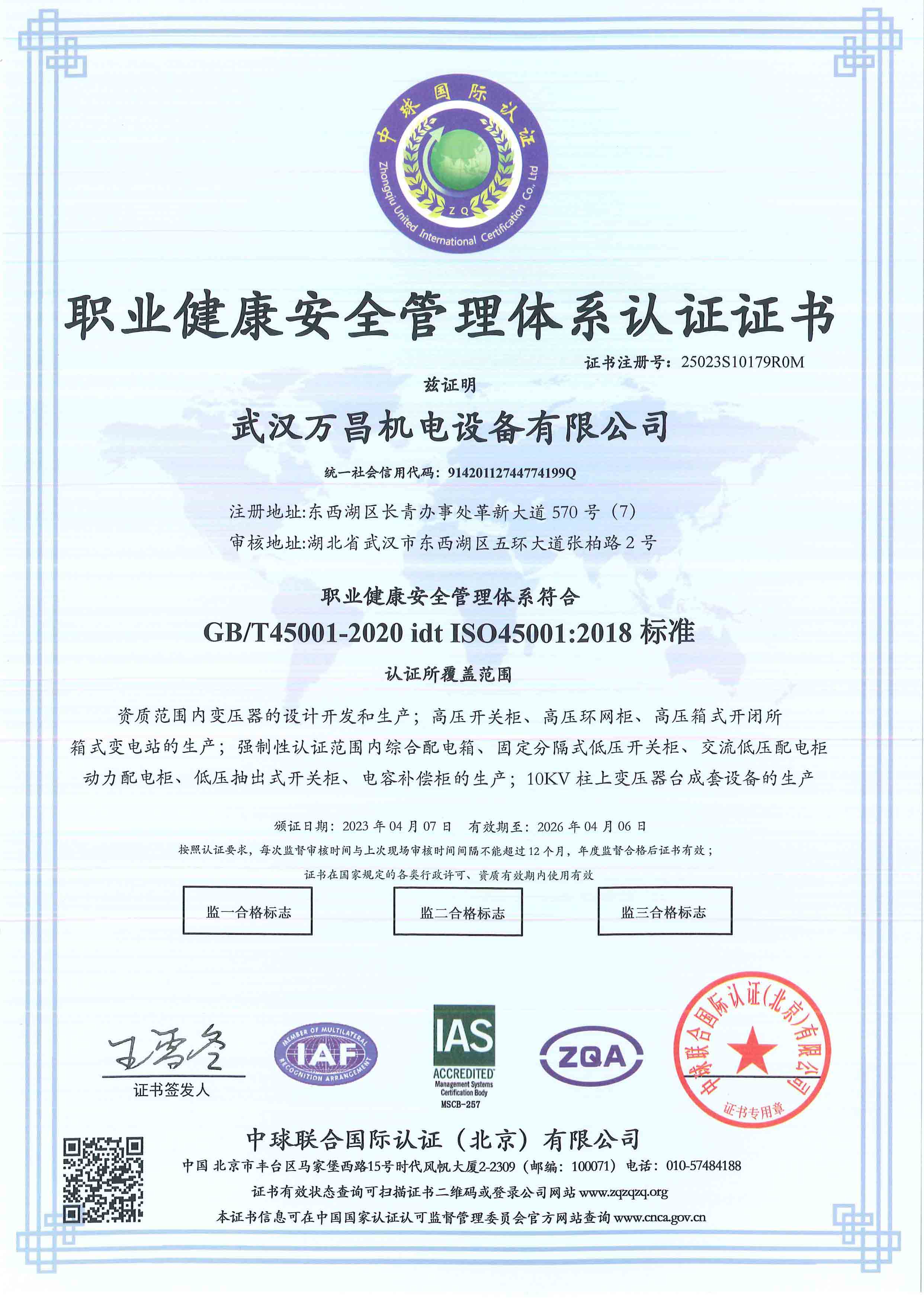環(huán)境管理體系認(rèn)證證書