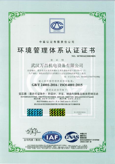 環(huán)境管理體系認(rèn)證證書
